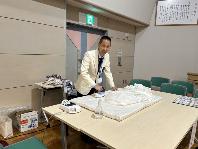 今回は、アイロン仕上げの実演を担当させていただきました。